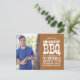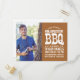 Cool rustique graduation barbecue invitation à la fête de barbecue avec la typographie vintage en détresse. Utilisez les outils de conception pour choisir n'importe quelle couleur d'arrière - plan pour coordonner avec les couleurs de votre école ou le thème de votre fête. Ajoutez les détails de votre photo principale et de votre fête de remise de diplômes sur le devant avec une deuxième photo, votre nom, votre année de classe et le nom de l'école ou tout autre texte sur le côté arrière. Utilisez les outils de conception pour ajouter plus de photos et de texte, modifier des polices et des couleurs pour créer un faire-part de graduation unique et une invitation de fête.