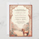Éblouissez vos invités avec cette élégante invitation de mariage à thème indien avec de belles colonnes traditionnelles et des éléments architecturaux vintages avec un cheval royal debout gracieusement. Customisez le code QR pour RSVP en ligne ou l'emplacement du lieu. Ajoutez simplement les détails de votre événement sur ce modèle facile à utiliser pour en faire une invitation unique.