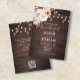 Voici notre Faire-part de mariage rustique enchanteur, le choix idéal pour votre célébration mariage de automne. Le design est agrémenté d'un décor de bois rustique magnifiquement illustré, évoquant le charme et la chaleur d'un cadre automnal. En haut de la carte, une étonnante aquarelle boho arrangement de fleurs aux couleurs neutres apaisantes est gracieusement présentée, illuminée par la douce lueur des lampes à cordes, ajoutant une touche de magie et de romance. L'invitation combine élégamment du texte dans une police serif classique avec un script moderne, en surlignant le titre "Le Mariage de" dans une police de script captivante. Cette invitation est une sélection idéale pour les couples qui cherchent à capturer l'essence d'un mariage de automne, mêlant charme rustique et sophistication moderne. Préparez-vous à votre journée spéciale avec une invitation qui non seulement annonce votre événement, mais reflète aussi la beauté et l'esprit unique de votre histoire d'amour.