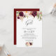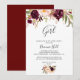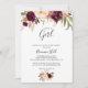 Ce boho floral rustique simple c'est une invitation de baby shower fille est parfait pour un baby shower moderne ou saupoudrer. Le design se compose de pivoines d'aquarelle rose, violet, rouge et bordeaux regroupées en bouquets élégants avec feuillage vert, inspirant beauté naturelle.
