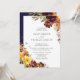 Cette élégante invitation de mariage présente une belle aquarelle bordeaux, orange brûlée, jaune floral et bouquet de feuillage d'automne. Conçu pour correspondre à notre collection de mariages Romance d'automne. Personnalisez-le avec vos détails facilement et rapidement, appuyez simplement sur le bouton customiser pour réorganiser et formater le style et le placement du texte. c) Le Happy Cat Studio