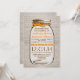 Jolie invitation au mariage campagnard rustique avec un pot de mason dessiné à la main et un arc de cercle orange. L'arrière - plan burlap est un dessin imprimé sur le papier - pas un tissu burlap réel. Contactez-moi si vous avez besoin d'aide pour personnaliser ou pour avoir une demande de couleur personnalisée.