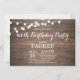 Invitation rustique de 100e anniversaire avec guirlande lumineuse sur fond de bois. 13e 15e 16e 18e 21e 30e 40e 50e 60e 70e 80e 90e 100e, Tout âge. Pour une personnalisation plus poussée, veuillez cliquer sur le bouton "Personnaliser" et utiliser notre outil de conception pour modifier ce modèle.