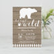 Invitation rustique de baby shower d'ours blanc. Invitation de baby shower d'hiver. Invitation de baby shower de garçon ou de fille. Obtenons sauvages. Invitation de baby shower de vacances d'hiver. Arrière - plan en bois rustique. Grange vintage de pays rétro. Pour davantage de personnalisation, cliquez sur svp la "personnaliser il" bouton et utilisez notre outil de conception pour modifier ce modèle.