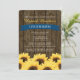 UNE INVITATION ORIENTÉE DE FÊTE DE LA MARIÉE DE TOURNESOL AVEC UN CHARME DE PAYS ET UNE SENSATION RUSTIQUE. UNE BARRIÈRE DE GRAIN EN BOIS OU UNE CONCEPTION EN BOIS DE REGARD DE BARIL ET UN ÉQUILIBRE DE TÊTE DE CLOU. ÉCRIVEZ CELUI QUE VOUS VOULIEZ SUR LA CONCEPTION IMPRIMÉE DE REGARD DE BANNIÈRE DE RUBAN DE BLEU DE COBALT SUR L'AVANT ET LE DOS DE CET INVITATION. AJOUTEZ LES INITIALES DES JEUNES MARIÉS À L'INTÉRIEUR DE LA CONCEPTION DÉCOUPÉE DE COEUR SUR LE DOS DE L'INVITATION. UN BOUQUET DES TOURNESOLS JAUNES D'OR VONT VOIR UN CRU ET PAINTERLY. PERFECTIONNEZ POUR LES AJOUTER WEDDING SHOWER OU FÊTE DE LA MARIÉE À UN THÈME DE FERME OU DE FERME DE GRANGE DE BASSE-COUR. CONCEVEZ LES STUDIOS DE CHRISSY H. DE ©, LLC. TOUS DROITS RÉSERVÉS.