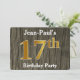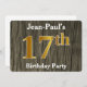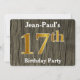 Cette conception d'invitation comporte le numéro ordinal "17ème" avec un aspect faux or. Il est également doté d'un nom personnalisé et d'un arrière - plan rustique en faux bois. Les détails de l'événement sur le dos peuvent être customisés. Il pourrait être utilisé pour les invitations à la fête du dix-septième anniversaire de quelqu’un. [~Z0000016]