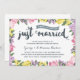 Cette élégante et moderne invitation pour 75 ans de mariage comporte une belle calligraphie au pinceau; de magnifiques fleurs roses, violettes et jaunes; et une typographie rustique qui lit "Juste Mariés (il y a soixante-quinze ans!)."