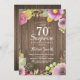 Rustic Floral Surprise 70e Anniversaire Invitation pour Femmes. Aquarelle Floral, Rose, arrière - plan de bois rustique. Pour plus de personnalisation, cliquez sur le bouton "Customiser" et utilisez notre outil de conception pour modifier ce modèle.
