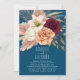 Invitation vos invités à une fête inoubliable avec cette invitation à la réception de mariage turquoise à fleurs rustiques. Doté d'un bouquet époustouflant, blanc, et de fleurs bordeaux profondes, avec un feuillage doré et luxuriant sur un riche arrière - plan turquoise, cette invitation exhale élégance et romance. Parfait pour les mariages d'automne ou d'hiver avec une ambiance boho-chic, il offre une esthétique chaleureuse et accueillante. Customisez le texte en fonction des détails de votre événement.