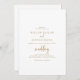 Ce rustique script d'or décontracté couple et les deux parents accueillant faire-part de mariage est parfait pour un mariage campagnard. Le design simple et moderne d'or et de blanc présente une calligraphie manuscrite unique et fantaisiste, avec un style boho minimaliste contemporain. Personnalisable dans n'importe quelle couleur. Gardez le design minimal et simpliste, en l'état, ou personnalisez-le en ajoutant vos propres graphiques et artwork.