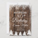 Rustic Winter 80th Birthday Party Invitation. Ce design est agrémenté de jolis arbres moelleux aquarellés sur un arrière - plan de bois rustique. Cliquez sur le bouton personnaliser pour plus de flexibilité dans la modification du texte ou le déplacement des graphiques. Contactez-nous si vous avez besoin que cette conception s'applique à un produit spécifique pour créer votre propre article correspondant unique.