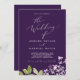 Ce faire-part de mariage rustique violet lilas est parfait pour un mariage de printemps ou d'été. Le design floral romantique et élégant présente des fleurs sauvages lilas violets d'aquarelle aux allures de jardin boho.