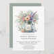 Ce faire-part de mariage rustique rayonne de l'élégance de la campagne avec son aquarelle douce illustrant un pot de maçon aux tons de fleurs sauvages rose, violet et crème, accentué par la verdure luxuriante. Le style peint à la main apporte une touche douce et romantique, tandis que le bocal de mason évoque un charme vintage et une chaleur d'accueil. Équilibré et aéré, le design est parfait pour une fête du vignoble ou du jardin, invitant les invités à une journée remplie d'amour, de nature et de simplicité sincère. Personnalisez le étiquette sur le bocal et le reste de l'invitation.