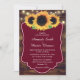 Ces invitations de mariage bordeaux rustiques avec des tournesols et des lampes à cordes contre un arrière - plan en bois de grange sont le choix parfait pour un pays bordeaux, ou la fête de mariage de grange inspirée des tournesols. Conception entièrement personnalisable. Personnalisez facilement cette carte de mariage de tournesol avec vos détails mariages.