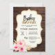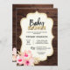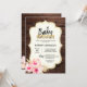 Invitation Rustique Pays Bois Floral Baby shower Or rose