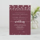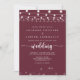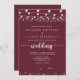 Cette faire-part de mariage bordeaux à cordes rustiques est parfaite pour un mariage classique. Le design présente de belles lampes à cordes peintes à la main avec de splendides étoiles dans un arrière - plan bordeaux.