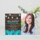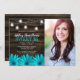 Cette invitation rustique et sucrée de 16 ans est un choix parfait pour une fête à thème country. Doté de lampes à cordes, de bocaux de mason et de marguerites turquoises sur un arrière - plan en bois de grange foncé. Vous pouvez facilement personnaliser ce modèle en utilisant les outils en ligne pour changer le texte et ajouter votre propre photo.