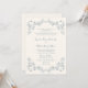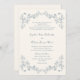 Elégant faire-part de mariage de ligne florale vintage avec une chinoiserie rustique bleu poussiéreux design de cadre ornemental et une police manuscrite fantaisiste.