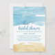 Cette carte d'invitation à la douche nuptiale couleur sable et mer est parfaite pour une douche de mariage de plage. Le design abstrait présente une texture d'aquarelle jaune et bleu qui est agencée pour faire ressortir les ondes océaniques du bord de mer.