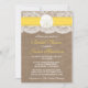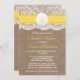 Cette invitation à la nuptiale de plage de sable jaune en dollars fera la faire-part parfaite pour toute future mariée ! Le design est composé d'un bel arrière - plan rustique effet burlap avec une coupe en dentelle vintage romantique finie avec un dollar de sable étonnant sur un ruban jaune. Ces invitations peuvent être personnalisées pour votre occasion spéciale et feraient la faire-part parfaite pour n'importe quel mariage de plage, douche nuptiale, fête de fiançailles, fête d'anniversaire et bien plus encore. *Veuillez noter que Zazzle ne vend que des invitations imprimées, de sorte que ces invitations n'ont pas de matériel de burlap, dentelle, dollar de sable ou ruban.