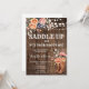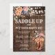 Editable Saddle Up Western Cowgirl Birthday Invitation modèle Célébrez la venue de l'âge traditionnel avec notre Rustic Western Birthday Party Invitation, parfait pour une célébration à thème champêtre. Cette invitation mélange la chaleur d'un arrière - plan rustique en bois avec le charme des accents floraux et des lampes à cordes, qui culminent dans un design aussi unique que beau.
