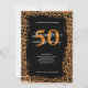 Invitation la divas à sa célébration de 50e anniversaire avec cette imitation de léopard noir et de cuivre avec une couverture noire pour votre invitation d'anniversaire. Invitations de fête d'anniversaire de fêtes de félins sauvages personnalisables. Glamour noir, cuivre, orange, brun et blanc chic invitation girly. Customisez les styles de police calligraphie modernes et élégants pour un événement en soirée.