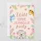 Apportez la magie de la jungle à l’anniversaire de votre enfant avec cette invitation à thème Wild One. Des couleurs vives, des animaux souriants et une végétation tropicale créent une ambiance festive. Idéal pour des fêtes de premier anniversaire inoubliables.