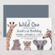 Cute Safari bébé animaux 1er anniversaire invitation. Oeuvre originale de Komila Y.