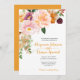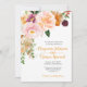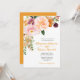 Fleurs d'aquarelle rustique dans les invitations de mariage safran jaune, mauve et rose floral. Les zones de texte sont faciles à personnaliser avec vos propres informations. Le texte est un mélange de polices de calligraphie modernes et ornées en jaune et gris safran. Le dos de la carte est safran. Parfait pour un mariage d'automne ou d'hiver.