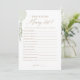 Demandez aux clients du baby shower de participer à une partie de "Who Knows Mommy Best" avec cette carte de jeu élégante, avec typographie or et un ballon vert sauge.