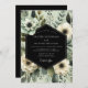 An elegant composition features creamy white blossoms with dark centers, nestled amongst lush sage green foliage and delicate botanical accents. The overall aesthetic evokes a rich, sophisticated, and natural beauty, perfect for a memorable occasion.