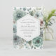 A dreamy watercolor design unfolds with soft sage green and dusty blue blossoms, accented by subtle blush pink roses. This enchanting floral composition evokes a romantic and ethereal mood, perfect for a sophisticated affair.