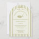 Celebrate golfers of any age with these customizable invitations. They feature a soft cream and sage green color scheme and my illustration of a golf club and golf ball with arch-shaped cream and sage green frame topped with a bow and set against a preppy striped background. Add your own custom headline and all of your party details.