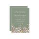 Elevate your wedding with this elegant design featuring soft sage green backgrounds on both sides, creating a calm and timeless base that works beautifully from spring through autumn. The invitation highlights a refined floral border along the bottom, featuring muted pastel blooms in soft pink, blue, purple, yellow, and orange tones, gently accented with delicate greenery for a serene, garden-inspired look.