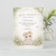 A soft and elegant baby shower design featuring an adorable bunny surrounded by delicate sage green florals and airy botanical greenery. Gentle watercolor textures, small butterflies, and neutral floral details create a calm woodland nursery aesthetic with a refined storybook feel. The natural sage palette gives the design a timeless, gender-neutral look that feels fresh and serene. Perfect for a sage green themed baby shower with a sweet woodland atmosphere.