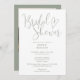 Cette invitation à la douche nuptiale à script vert sage et élégant peut être personnalisée avec toutes vos informations d'événement spécial et le code QR photo et registre au verso. Conçu par Thisisnotme©