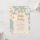 Invitation Sage Green Daisy Hello Baby Retro Baby Douche