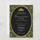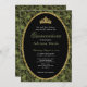 This elegant sage green and black floral quinceanera invitation has roses, a gold tiara crown, and a gold glitter oval with a personalizable template to create your own message. The invitation template is customizable in the listing editor and is also available as a digital download that's printable after you personalize it.