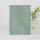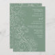 Cette élégante invitation au mariage présente un délicat design ornemental floral avec fleurs, oiseaux et feuilles sur un arrière - plan vert sage. Le texte combine écriture manuscrite et polices serif pour un look élégant et moderne. Parfait pour un mariage de automne d'hiver ou d'automne.