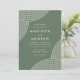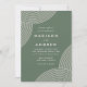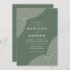 Invitations de mariage modernes avec des lignes géométriques tourbées de couleur crème aux coins avec un arrière - plan vert sage. Personnalisez les invitations aux mariages en terre cuite en ajoutant vos noms et les détails du mariage. Les invitations modernes de mariage boho s'inversent pour montrer un arrière - plan vert sage solide.