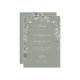 Un élégant faire-part de mariage fleur sauvage à aquarelle fleurie avec vos détails de célébration mariages, dans une typographie blanche chic sur un arrière - plan vert sage élégant. Avec les détails de votre site Web mariage et votre code QR au verso. Conçu par Thisisnotme©