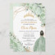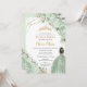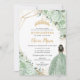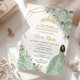 Personnalisez cette invitation douce à la sauge verte Quinceañera / Sweet 16 anniversaire facilement et rapidement. Cliquez simplement sur le bouton customiser pour modifier les textes, modifier les polices et les couleurs des polices. Avec de belles fleurs vert sauge pastel, une verdure délicate et une fille dans une belle robe verte sage. Objets correspondants disponibles en magasin. c) Somerset Fine Paperie