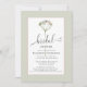Sage Green Floral Heart Script Bridal Shower Invitation Avez-vous une mariée qui favorise un design minimal? Cette invitation est parfaite. L'arrière - plan vert et blanc sauge sobre est accentué par une simple fleur dessinée à la main et une typographie de script personnalisée.