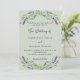 Un arrière - plan vert sage décoré de fleurs de lavande et de verdure d'eucalyptus. Personnalisez et vos noms et détails. Retour : ajoutez votre URL web à votre site web mariage pour RSVP et plus de détails.