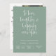 Cette invitation présente un élégant style moderne minimaliste avec de belles calligraphies et des polices de typographie propres et serif sur un arrière - plan vert sage. La simplicité de ce design ajoute une touche d'élégance à votre mariage. Il fonctionne bien avec de nombreux thèmes mariages et certainement un grand ajout à votre mariage. Il suffit de customiser les noms et le libellé en quelques étapes simples et personnaliser la carte d'invitation avec votre photo du couple heureux et remplacer le code QR par le vôtre au dos de l'invitation pour donner à votre invitation une touche personnelle agréable. Remarque : Les belles phrases élégantes de la typographie "à l'amour, au rire, et heureux toujours après" sur le devant de l'invitation ET "pour plus de détails sur notre mariage & à rsvp sur notre site mariage" au dos de l'invitation avec d'autres éléments d'illustration graphique comme les lignes ne peuvent pas être modifiés, modifiés, déplacés, ou supprimés. Elles sont réparées. Si vous devez modifier la couleur, vous pouvez customiser la carte d'invitation. Vous pouvez customiser et personnaliser l'invitation afin de répondre à vos besoins mariages et cliquez simplement sur personnaliser de l'invitation. Vous pouvez facilement personnaliser l'invitation avec le texte comme un téléchargement numérique et l'envoyer électroniquement et le partager avec vos invités par SMS, email, ou médias sociaux. Ou vous pouvez également choisir de poster l'invitation concernant vos détails à vos invités. Ou vous pouvez obtenir les deux — invitation imprimée et obtenir l'invitation sous forme numérique en téléchargement instantané.