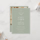Nous adorons cette faire-part de mariage verte sage, élégante, personnelle et moderne en même temps. Le ton vert doux est calme et intemporel, tandis que le design classique de la crête ajoute cette touche parfaite de tradition. Vous pouvez facilement ajouter votre propre photo pour une sensation personnelle, et le code QR est une fonctionnalité si pratique — parfait pour diriger les invités vers votre page RSVP ou votre site Web mariage. L'agencement épuré et minimal permet de lire facilement les détails, et la typographie se sent raffinée sans être compliquée.