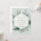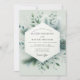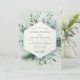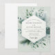 This design features a tranquil palette of muted sage green and soft blue-green watercolor tones. Lush sprigs of eucalyptus and pine needles create a serene woodland atmosphere. Delicate pinecones and frosted botanical elements evoke a crisp winter morning. Organic watercolor textures provide an elegant touch for a forest-themed event.