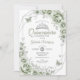 Invitation à la célébration de la Quinceanera verte, argentée et blanche. Caractéristiques, police de script, papillons, roses vert aquarelle et tiara. Parfait pour une élégante célébration de glamour de style princesse. Personnalisez avec vos propres détails. Invitations Zazzle imprimées ou téléchargement instantané modèle imprimable numérique.