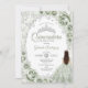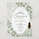 Invitation à la célébration de Quinceanera argent vert Sage. En vedette brune fille en robe de robe de bal, police de script, papillons argentés, roses d'aquarelle et tiara. Parfait pour une élégante célébration de glamour de style princesse. Personnalisez avec vos propres détails. Invitations Zazzle imprimées ou téléchargement instantané modèle imprimable numérique.