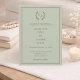 Invitation Sage green taupe wreath monogram simple wedding